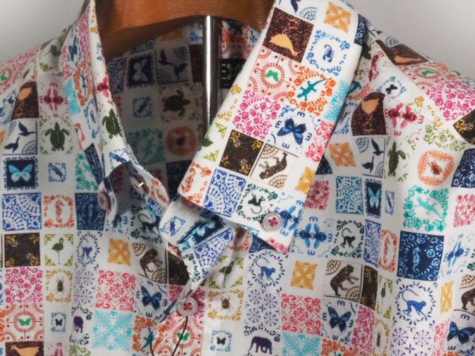 アンジェロジャパン ブロックチェック動物モチーフ プリント長袖シャツ