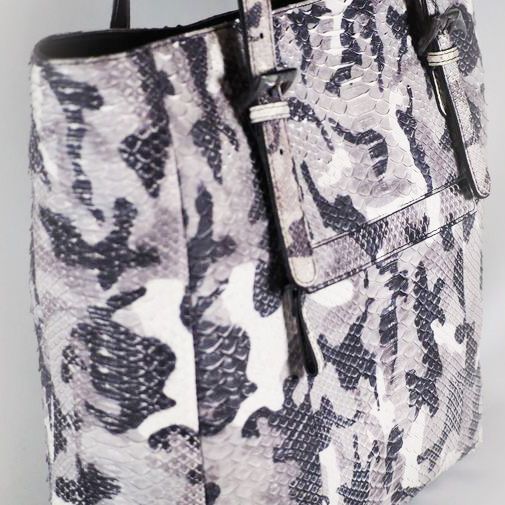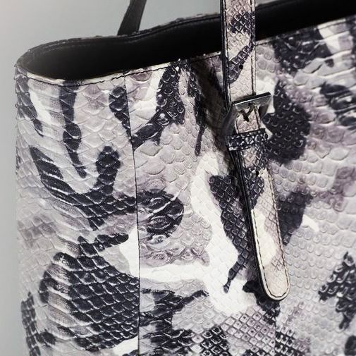 白×黒×グレー 迷彩柄パイソン トートバッグ